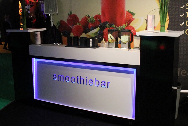 1. De hoogglans zwart/witte juicebar. Een stijlvolle bar doet het erg goed op zakelijke evenementen omdat hij volledig te personaliseren is. De bar beschikt over led-verlichting die op iedere gewenste kleur afgesteld kan worden. Heb je een grote ruimte te vullen? Neem dan de grootste bar voor wat meer body. Is de vloeroppervlak schaars? Dan hebben we zelfs een bar van minder dan een vierkante beter.